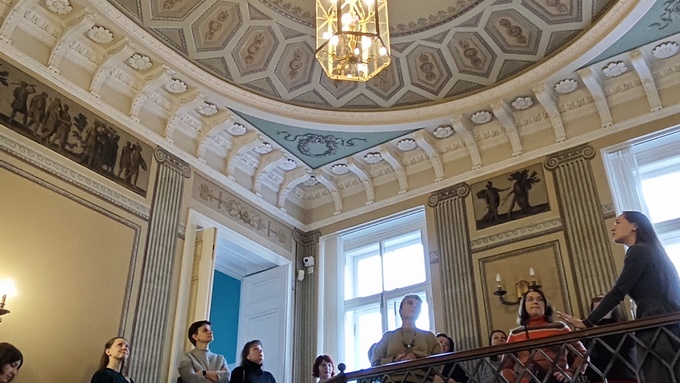 Прогуливаясь по Волховскому переулку Васильевского острова, можно заметить непритязательный фасад, который выполнен в позднем, строгом классическом стиле именуемым «безордерный классицизм». Взгляд как будто бы соскальзывает, не останавливаясь на нем, но за этим серым фасадом таится настоящая сокровищница истории. Речь идет о двух старинных особняках по адресу Волховский переулок дом 3, которые со временем слились в единый архитектурный ансамбль и готовы поведать вам удивительную историю взлёта одной из самых ярких торговых династий России. Когда то эти стены принадлежали Савве Яковлевичу Яковлеву — человеку, сколотившему колоссальное состояние на уральских рудниках и железоделательных заводах. Его имя гремело по всей империи, а особняк стал живым воплощением купеческой роскоши и амбиций. Давайте заглянем внутрь: • Цокольный этаж, когда то гудел от суеты — здесь располагались вместительные склады, где хранились и отгружались товары для торговли. • Первый этаж занимал деловой пульс династии: здесь находилась контора торговой фирмы Яковлевых, где совершались многотысячные сделки. • Верхний этаж — это настоящий парад великолепия: парадная анфилада, оформленная в лучших традициях классицизма. И что самое поразительное — эти интерьеры дошли до нас почти нетронутыми временем! У вас есть шанс пройтись по этим парадным залам, вдохнуть воздух истории и прикоснуться к судьбам людей, которые здесь жили. Сегодня в здании по адресу Волховский переулок, д. 1–3 расположился Василеостровский кампус Высшей школы менеджмента им. Артура Б. Шульца. Здесь постигают премудрости управления будущие бизнес лидеры — магистранты и слушатели программ EMBA/MBA. У этого ансамбля богатая и драматичная судьба: он пережил национализацию, выстоял в блокаду Ленинграда и не раз менял свое предназначение. Особняк купцов Яковлевых, госпиталь, музей — и вот теперь он превратился в храм науки и образования. В 1996 году здание передали СПбГУ, и началась масштабная реставрация, которая вдохнула в него новую жизнь. Приглашаем вас на экскурсию по этому удивительному месту! Мы пройдём по залам (а точнее — по двум особнякам, ставшим единым целым) и откроем для себя: • секреты уникальной отделки, сохранившейся сквозь века; • современную жизнь кампуса, где традиции встречаются с инновациями; • захватывающую историю первых владельцев — настоящую сагу о богатстве, власти и влиянии. А знаете ли вы, что основатель династии начинал как мещанин Собакин, торговавший телятиной? Как ему удалось стать потомственным дворянином и крупнейшим промышленником страны? И какие ещё уголки Петербурга хранят память о Яковлевых? Об этом и многом другом — на нашей экскурсии! Напоминаем что вход на территорию данного объекта показа осуществляется по паспортам и просим вас заранее предоставить Вас: номер, серию паспорта и полные ФИО (ВСЕ больше никаких данных предоставлять не нужно)