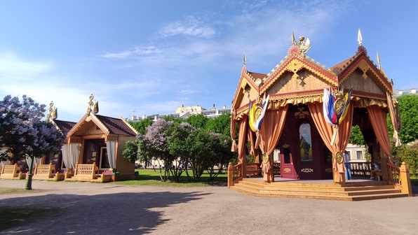 Посетители выставки также смогут посетить центральный павильон, в котором их ожидает мультимедийная экспозиция с рассказом о истории подготовки и проведении праздника в 1872 году. А переместиться во времени и очутиться на народном гулянии на Царицыном лугу последней четверти ХIХ века, посетители выставки смогут с помощью нового аттракциона — VR бинокуляров.